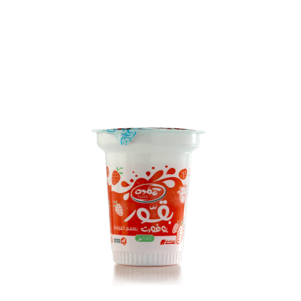 حليب بقري ومبستر، سكر، مواد مثبتة، فراولة، بادئة بكتيرية، لون غذائي، طعم غذائي