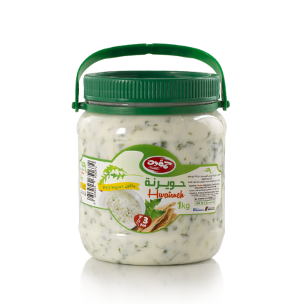 حويرنة، لبن رايب (حليب مبستر + بادئة)، ملح طعام، مادة حافظة (E202)