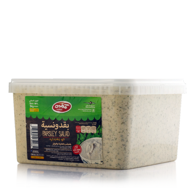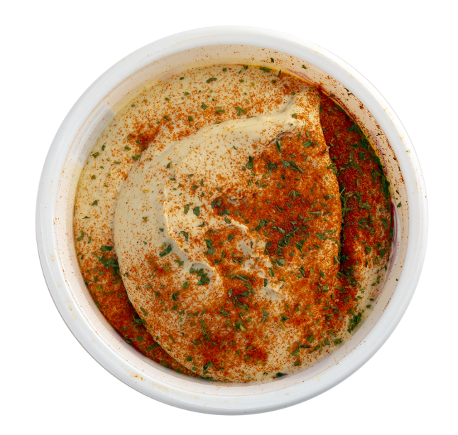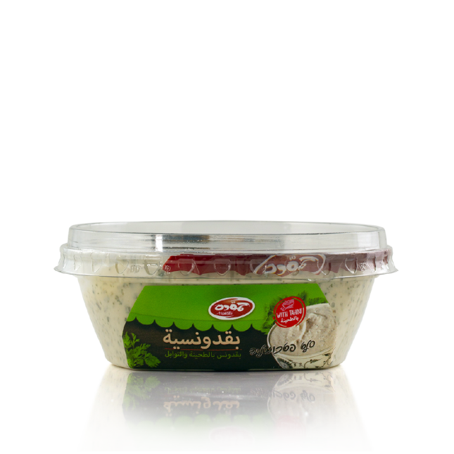 حمص مطبوخ، طحينة بذور السمسم، زيت نباتي، ملح طعام، ملح الليمون، توابل، بابريكا، بقدونس، مادة حافظة (E202، E211)، مثبتات (E415, E412)